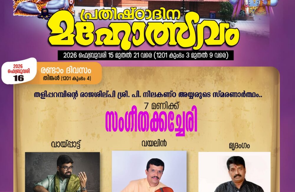 പി.നീലകണ്ഠ അയ്യരുടെ ഓര്മ്മദിനത്തില് മുയ്യം ശ്രീ ഇരട്ടത്തൃക്കോവില് ക്ഷേത്രത്തില് സംഗീതാര്ച്ചന