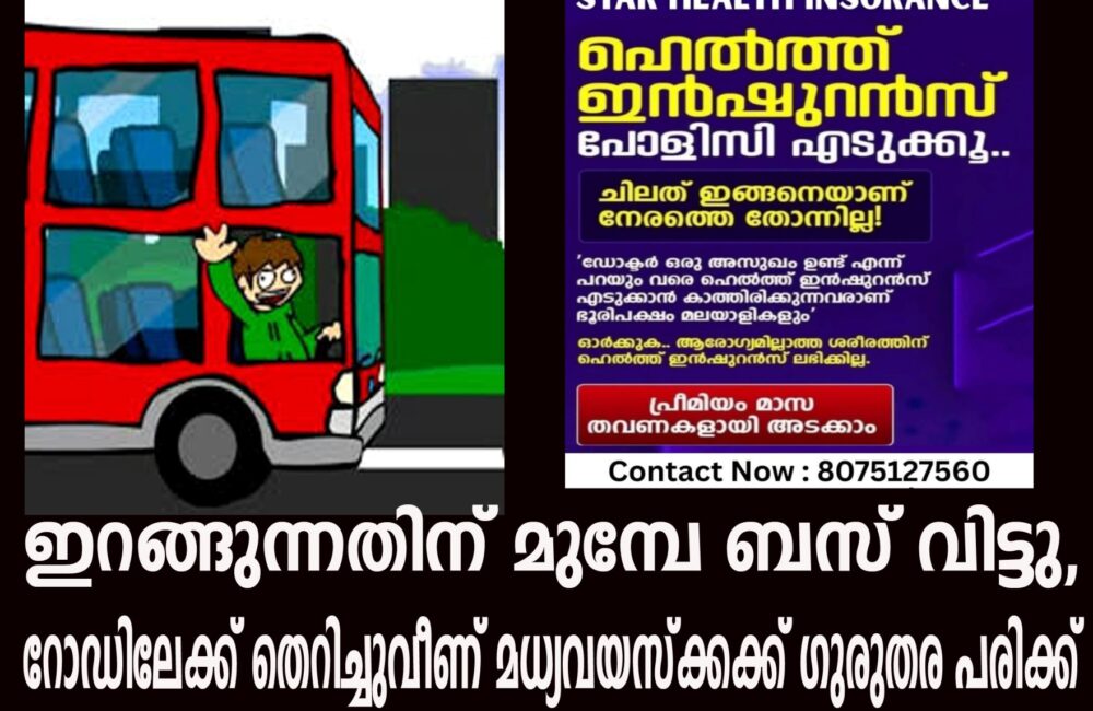 ഇറങ്ങുന്നതിന് മുമ്പേ ബസ് വിട്ടു, റോഡിലേക്ക് തെറിച്ചുവീണ് മധ്യവയസ്ക്കക്ക് ഗുരുതര പരിക്ക്