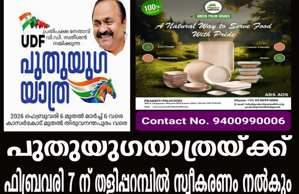 പുതുയുഗയാത്രയ്ക്ക് ഫിബ്രവരി 7 ന് തളിപ്പറമ്പില് സ്വീകരണം നല്കും