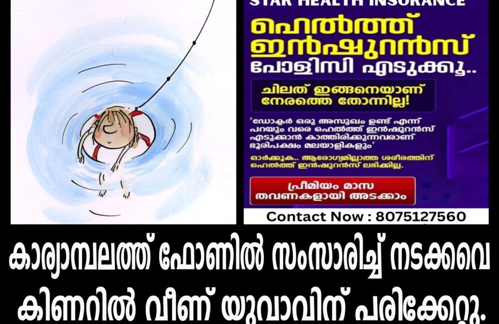 കാര്യാമ്പലത്ത് ഫോണില് സംസാരിച്ച് നടക്കവെ കിണറില് വീണ് യുവാവിന് പരിക്കേറ്റു.