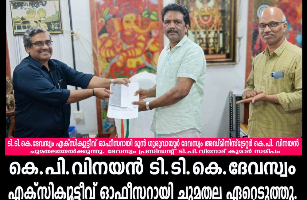 കെ.പി.വിനയന് ടി.ടി.കെ.ദേവസ്വം എക്സിക്യൂട്ടീവ് ഓഫീസറായി ചുമതല ഏറ്റെടുത്തു.