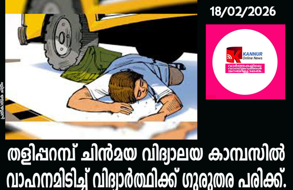 തളിപ്പറമ്പ് ചിന്മയ വിദ്യാലയ കാമ്പസില് വാഹനമിടിച്ച് വിദ്യാര്ത്ഥിക്ക് ഗുരുതര പരിക്ക്.