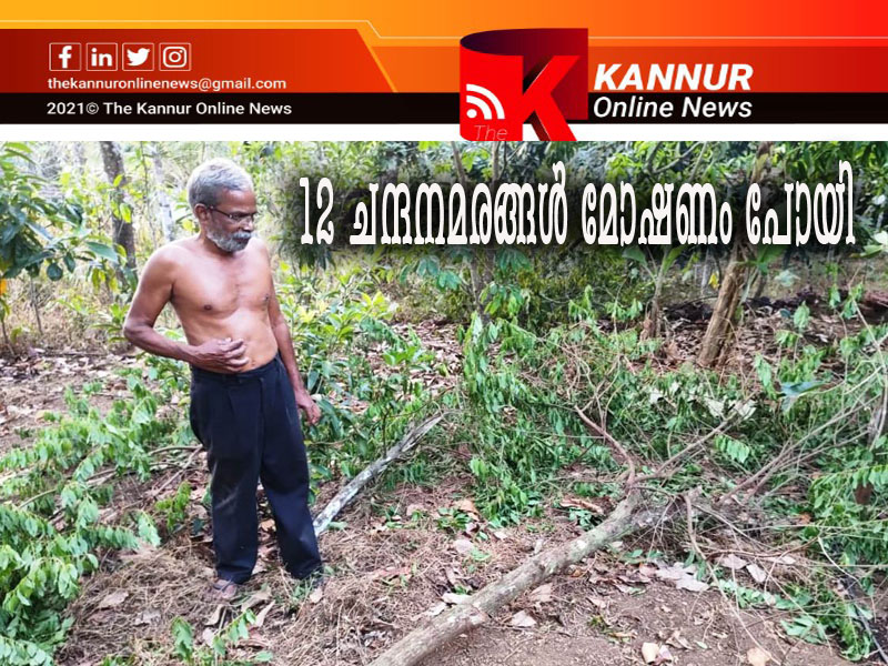 പരിയാരം:വൃദ്ധ ദമ്പതികള് താമസിക്കുന്ന വീട്ടിലെ പറമ്പില് നിന്നില് പന്ത്രണ്ട് ചന്ദന മരങ്ങള് മോഷണം പോയി.