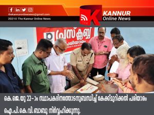 പാണപ്പുഴ, എന്.എം.രാമചന്ദ്രന് എന്നിവര് സംസാരിച്ചു. കേക്ക് മുറിക്കല്, മധുര പലഹാര വിതരണം എന്നിവയും നടന്നു.