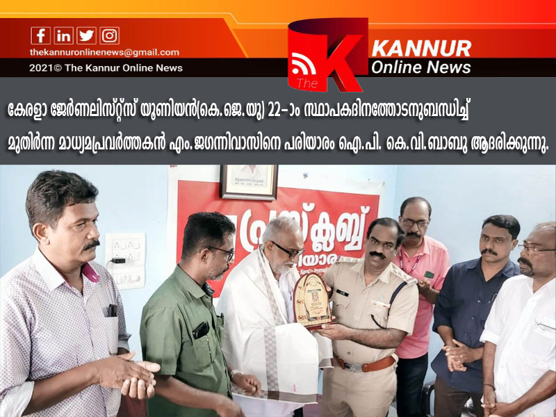 കേരളാ ജേര്ണലിസ്റ്റ്സ് യൂണിയന് (കെ.ജെ.യു) സ്ഥാപകദിനാഘോഷം-മുതിര്ന്ന മാധ്യമ പ്രവര്ത്തകന് എം.ജഗന്നിവാസിനെ ആദരിച്ചു.