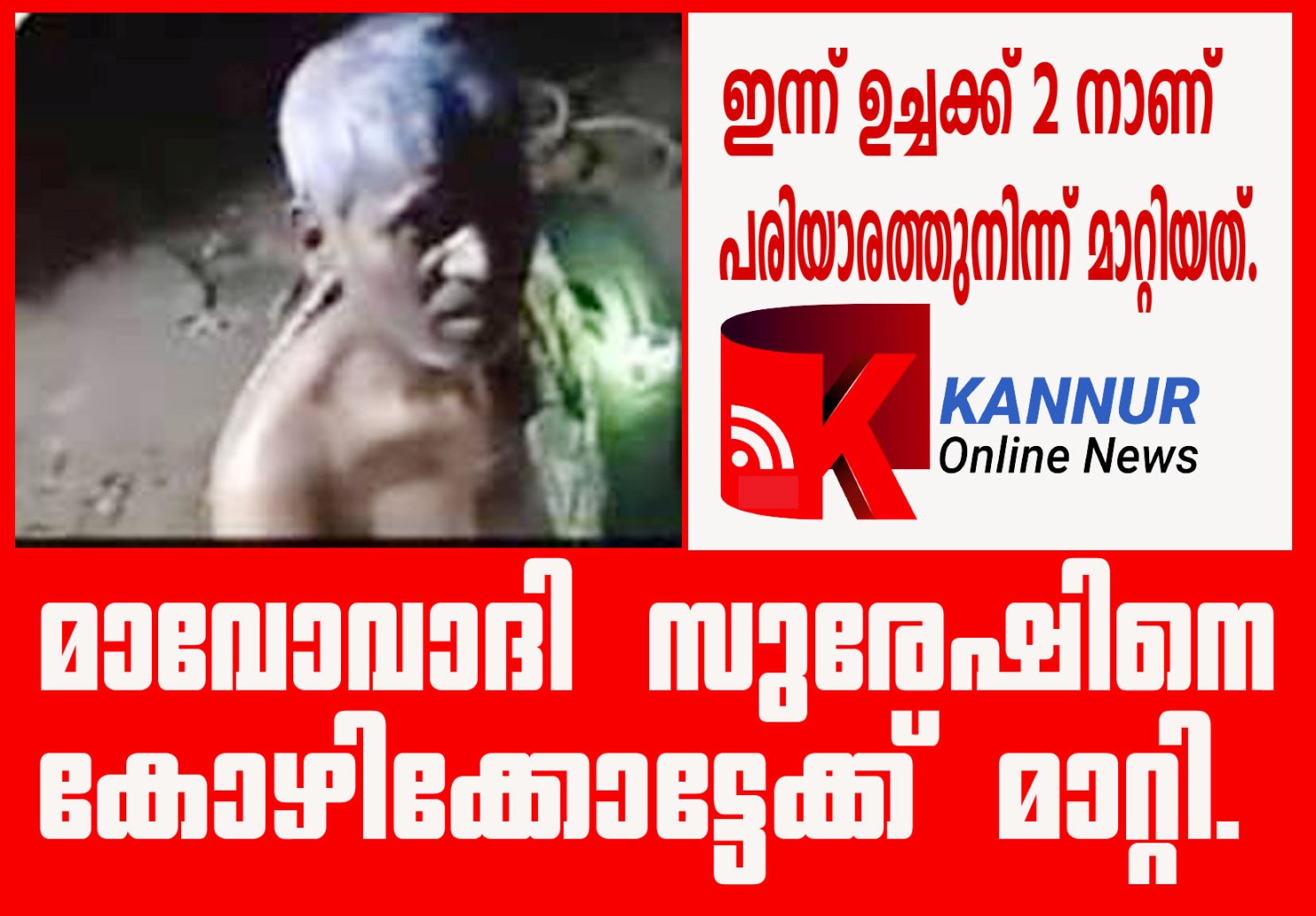 പരിയാരം: കണ്ണൂര്‍ ഗവ.മെഡിക്കല്‍ കോളേജില്‍ ചികിത്സയില്‍ കഴിയുന്ന മാവോയിസ്റ്റ് പ്രവര്‍ത്തകന്‍ സുരേഷിനെ വിദഗ്ദ്ധ ചികിത്സക്കായി ഇന്ന് ഉച്ചക്ക് രണ്ടോടെ കോഴിക്കോട് ഗവ.മെഡിക്കല്‍ കോളേജിലേക്ക് മാറ്റി.