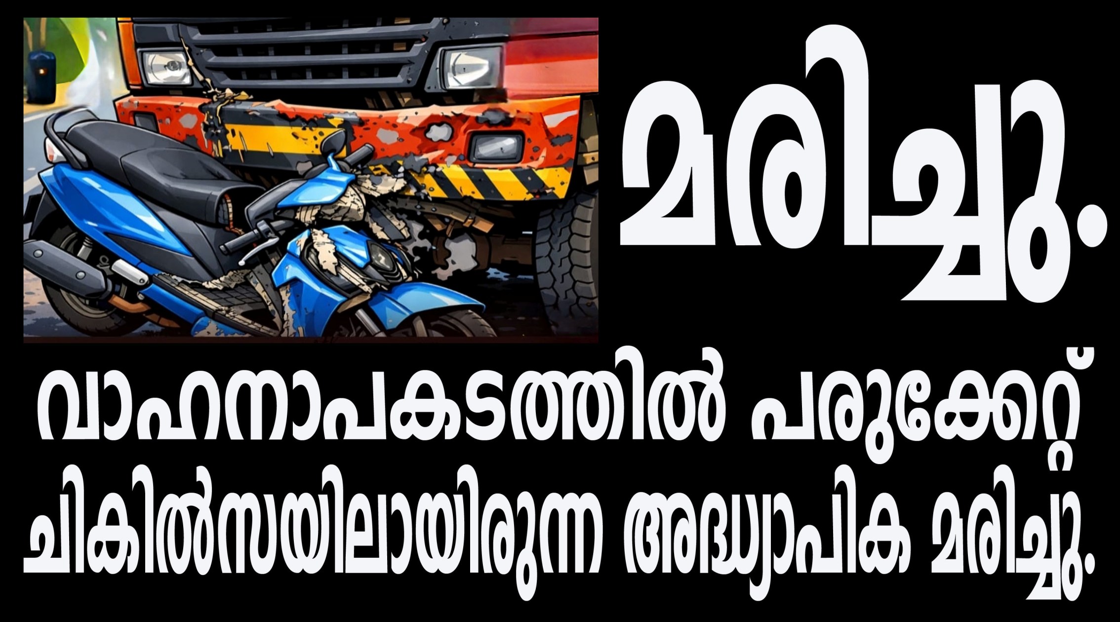 വാഹനാപകടത്തില്‍ പരുക്കേറ്റ് ചികില്‍സയിലായിരുന്ന അദ്ധ്യാപിക മരിച്ചു.