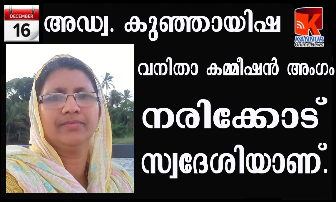 തിരുവനന്തപുരം: നരിക്കോട് സ്വദേശി അഡ്വ.കുഞ്ഞായിഷ വനിതാ കമ്മീഷന് അംഗം.