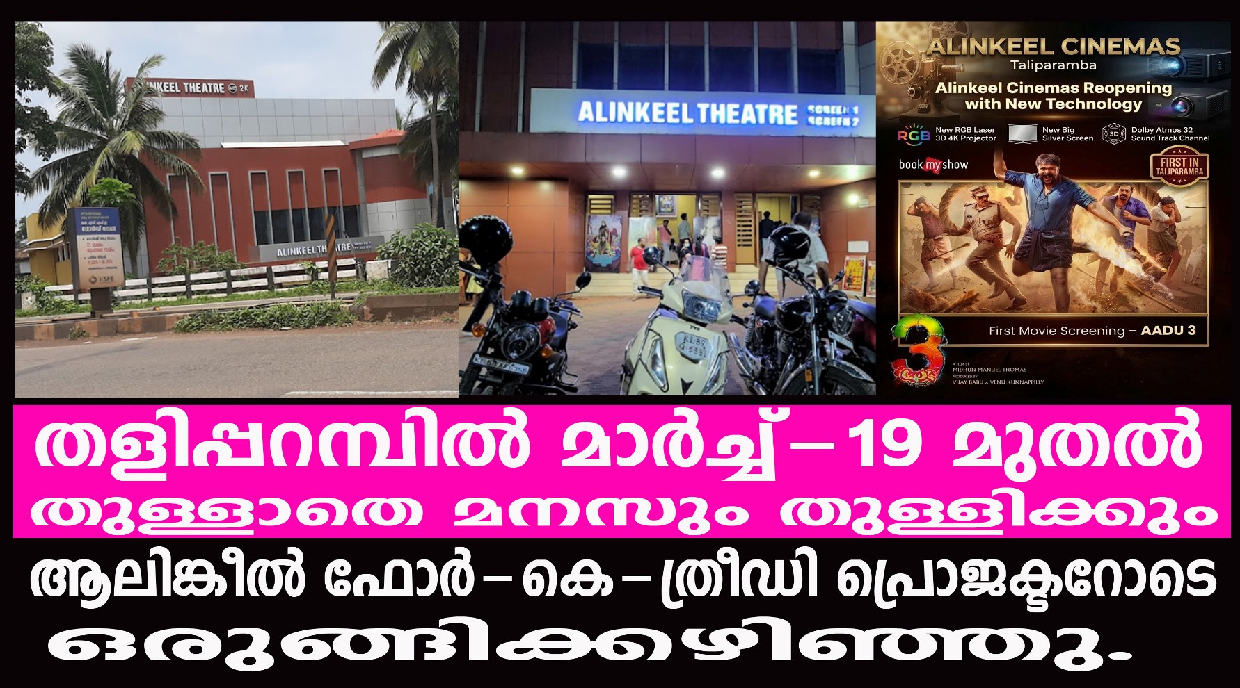 തളിപ്പറമ്പ് നഗരത്തില് ബാല്ക്കണി സൗകര്യമുള്ള ഏക തിയേറ്ററായ ആലിങ്കീല് 45-ാം വാര്ഷികത്തില് പ്രേക്ഷകര്ക്ക് പുതിയ ദൃശ്യാനുഭവം പകര്ന്നുനല്കാന് ഒരുങ്ങിക്കഴിഞ്ഞു.