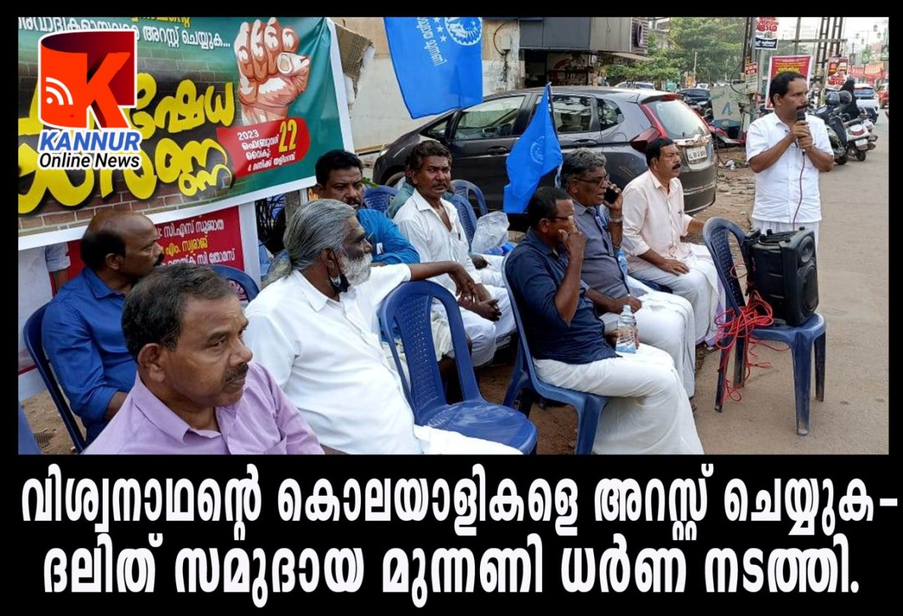 തളിപ്പറമ്പ്: വിശ്വനാഥന്റ കൊലയാളികളെ അറസ്റ്റ് ചെയ്യണമെന്നാവിശ്യപ്പെട്ട് ദലിത് സമുദായ മുന്നണി ജില്ലാ കമ്മിറ്റിയുടെ നേതൃത്വത്തില് തളിപ്പറബില് നടന്ന സായാഹ്ന ധര്ണ്ണ സാമൂഹ്യ സാംസ്കാരിക പ്രവര്ത്തകന് ഉത്തമന് ശ്രീകണ്ഠപുരം ഉദ്ഘാടനം ചെയ്തു. ദലിത് സമുദായ മുന്നണി ജില്ലാ പ്രസിഡന്റ് സി.ഗംഗാധരന് അധ്യക്ഷത വഹിച്ചു. ജില്ലാ സെക്രട്ടറി പ്രകാശന് പനയാല്, കെ.ടി.ഗോപാലന് മാസ്റ്റര് മുഖ്യപ്രഭാഷണം നടത്തി. ബി.ദാമോധരന് മാസ്റ്റര്, വിനോദ് മാസ്റ്റര്, സതീഷ് തച്ചന്, ഷൈജു കൊറ്റാളി, ചന്ദ്രകമല് എന്നിവര് പ്രസംഗിച്ചു.