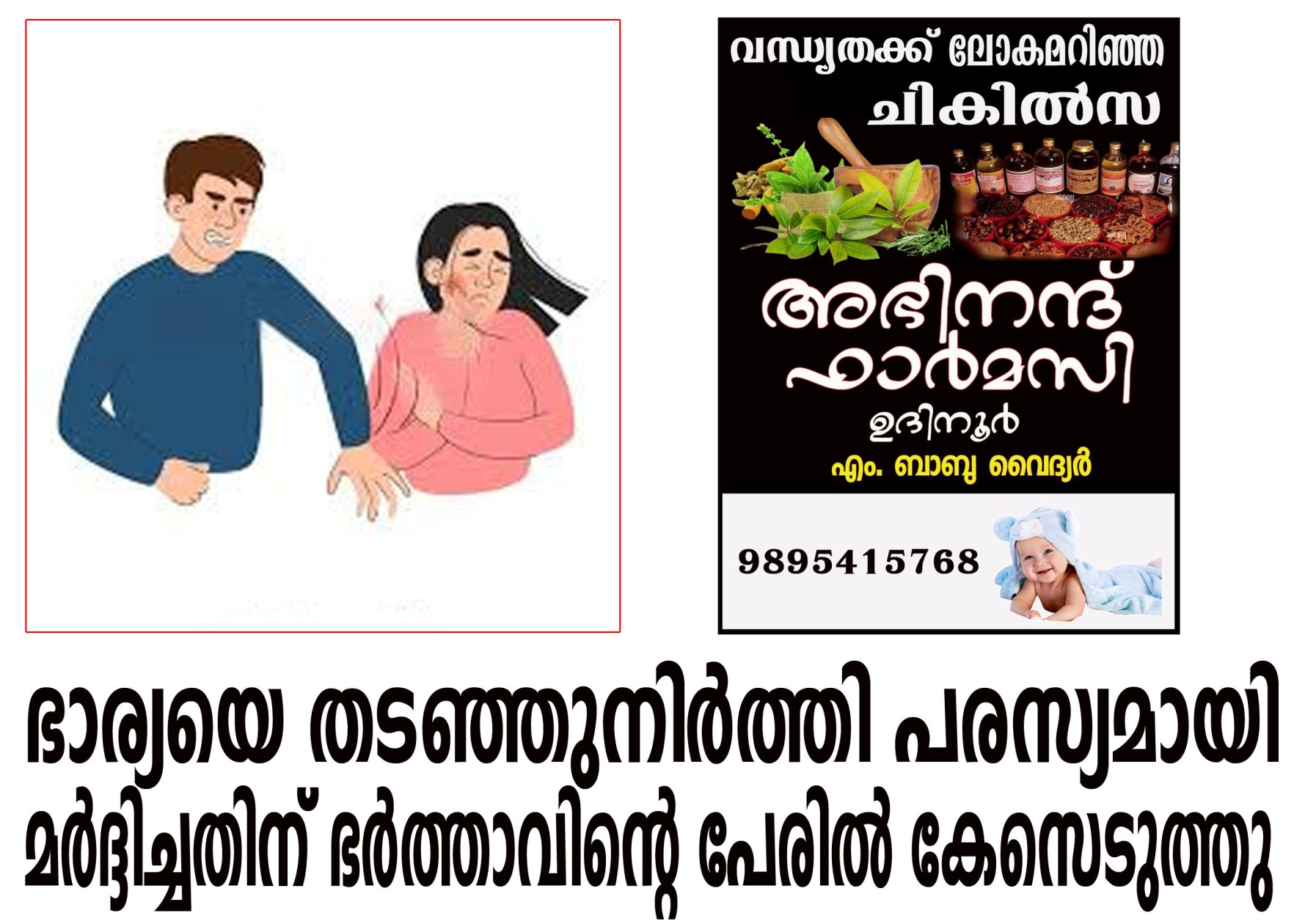 ഭാര്യയെ തടഞ്ഞുനിര്ത്തി പരസ്യമായി മര്ദ്ദിച്ചതിന് ഭര്ത്താവിന്റെ പേരില് കേസെടുത്തു.
