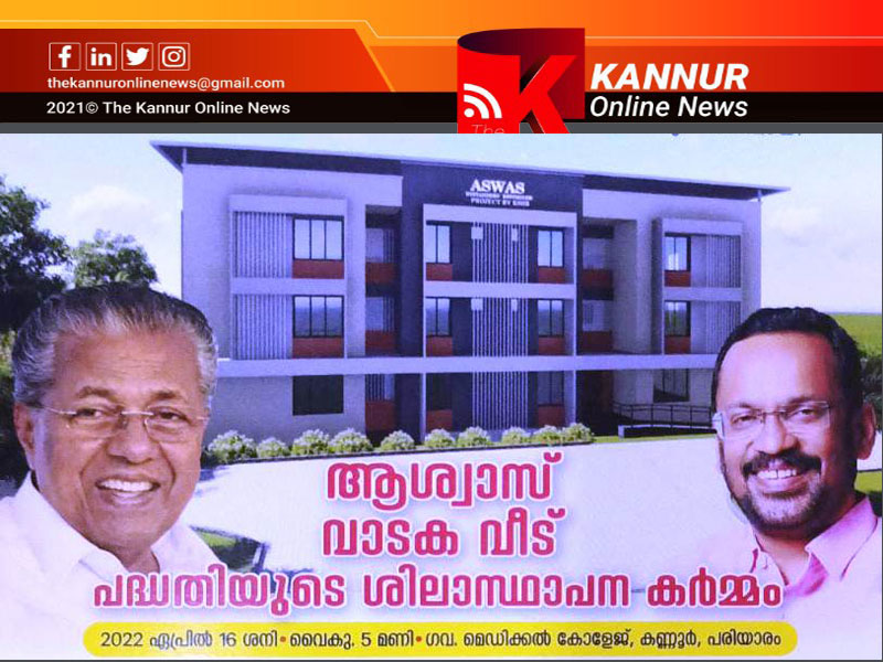 പരിയാരം: കണ്ണൂര് ഗവ.മെഡിക്കല് കോളേജില് ആശ്വാസ് വാടകവീട് പദ്ധതിയും.