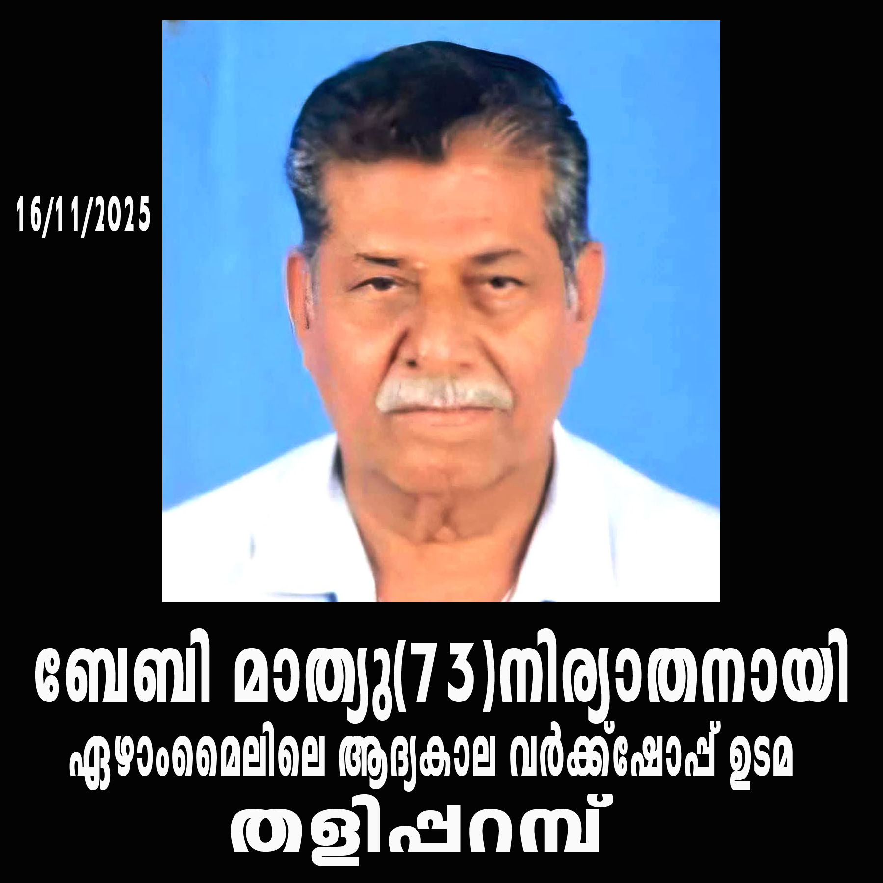 തളിപ്പറമ്പ്: ഏഴാംമൈലിലെ ആദ്യകാല വര്‍ക്ക്‌ഷോപ്പ് ഉടമ ബേബി മാത്യു(73)നിര്യാതനായി.