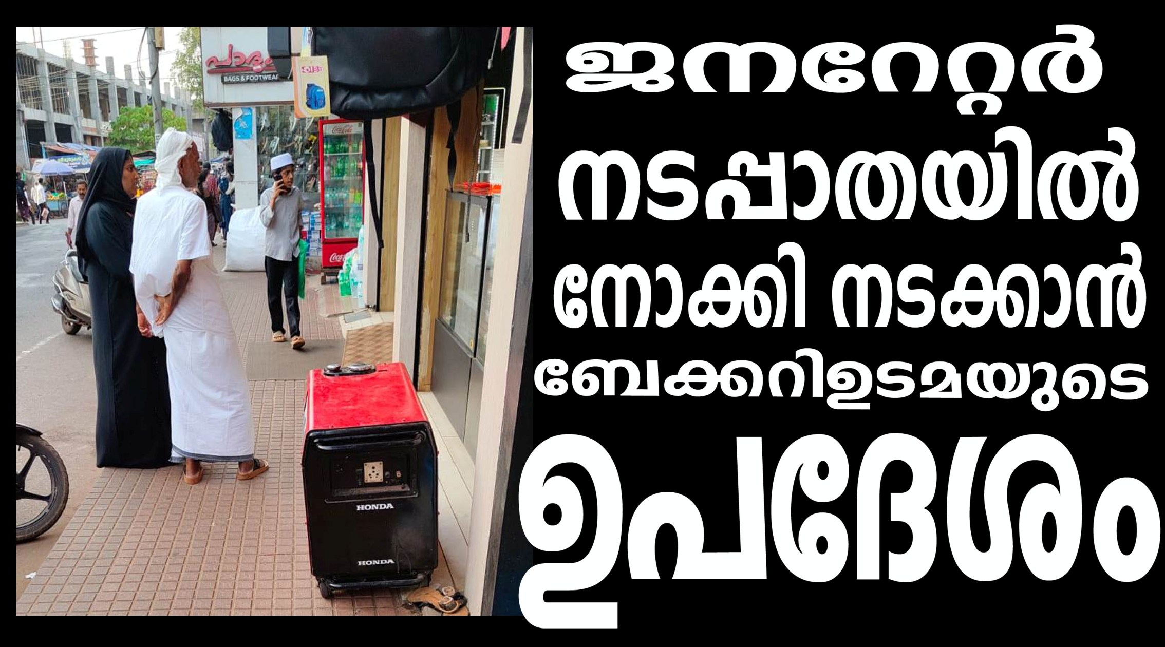 ഇന്നലെ ജനറേറ്റര് കാലില് തട്ടിയ ഒരാള് പരാതിപ്പെട്ടപ്പോള് ഉടമയുടെ ഉപദേശം നോക്കി നടന്നുപോ എന്നായിരുന്നു.