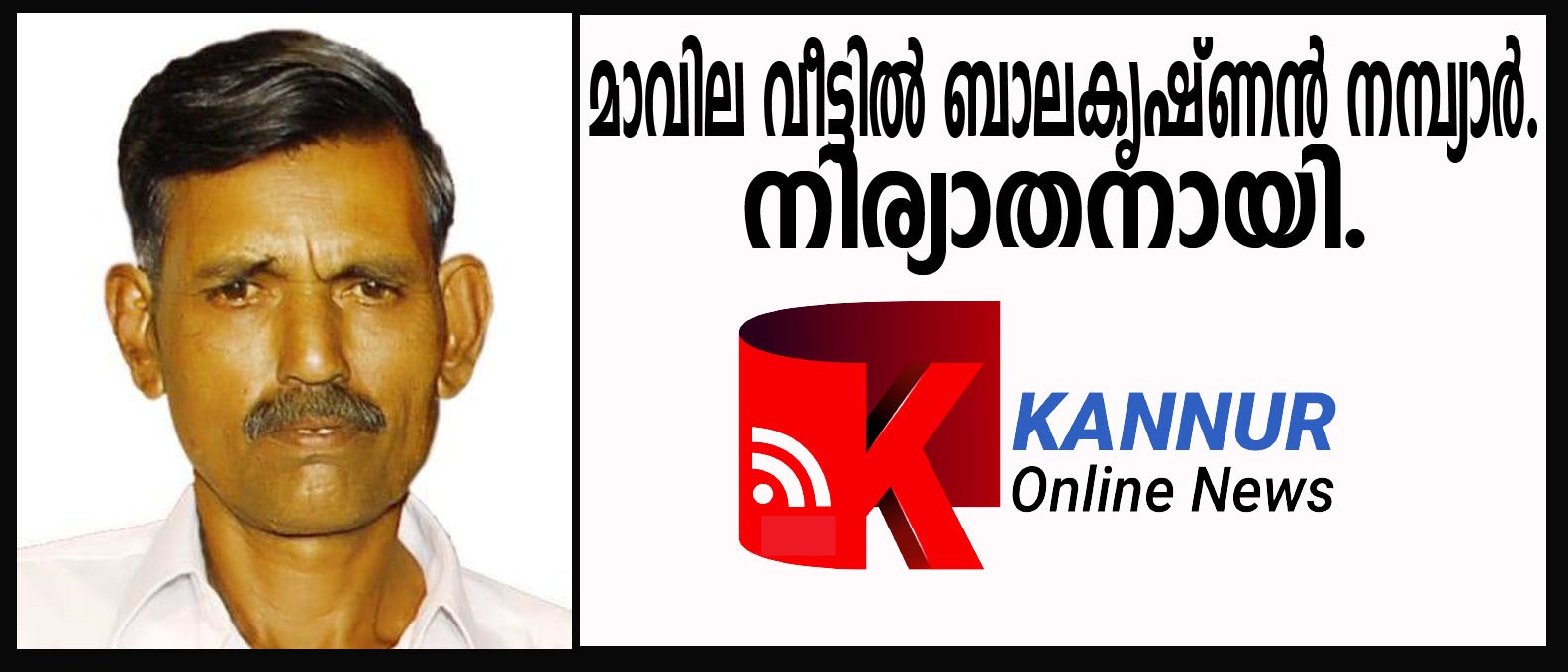 കടന്നപ്പള്ളി: കടന്നപ്പള്ളി കോട്ടത്തുംചാല് വായനശാലയ്ക്ക് സമീപത്തെ മാവില വീട്ടില് ബാലക്യഷ്ണന് നമ്പ്യാര് (69) അന്തരിച്ചു.