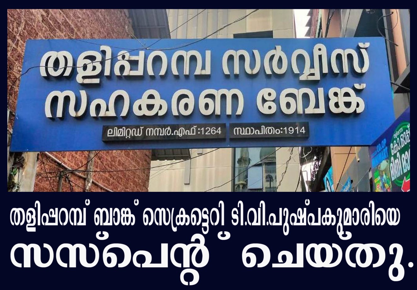 തളിപ്പറമ്പ് സര്‍വീസ് സഹകരണ ബേങ്ക് സെക്രട്ടെറി ടി.വി.പുഷ്പകുമാരിയെ സര്‍വീസില്‍ നിന്ന് സസ്‌പെന്റ് ചെയ്തു.