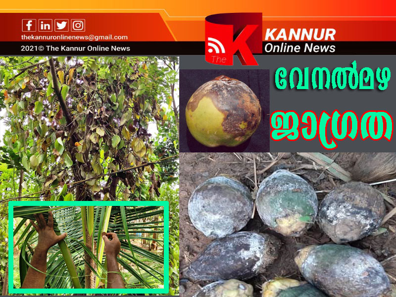 വേനല് മഴ തുടര്ന്നു വരുന്ന സാഹചര്യത്തില് പ്രധാന നാണ്യവിളകളായ തെങ്ങ്, കമുക്, കുരുമുളക് എന്നിവയ്ക്ക് കുമിള് രോഗങ്ങളായ കൂമ്പ്ചീയല്, മഹാളി, ദ്രുതവാട്ടം എന്നിവയുണ്ടാകാന് സാധ്യതകള് ഏറെയാണ്.