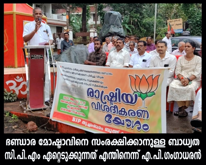 ഭണ്ഡാര മോഷ്ടാവിനെ സംരക്ഷിക്കാനുള്ള ബാധ്യത സി.പി.എം ഏറ്റെടുക്കുന്നത് എന്തിനെന്ന് എ.പി.ഗംഗാധരന്.