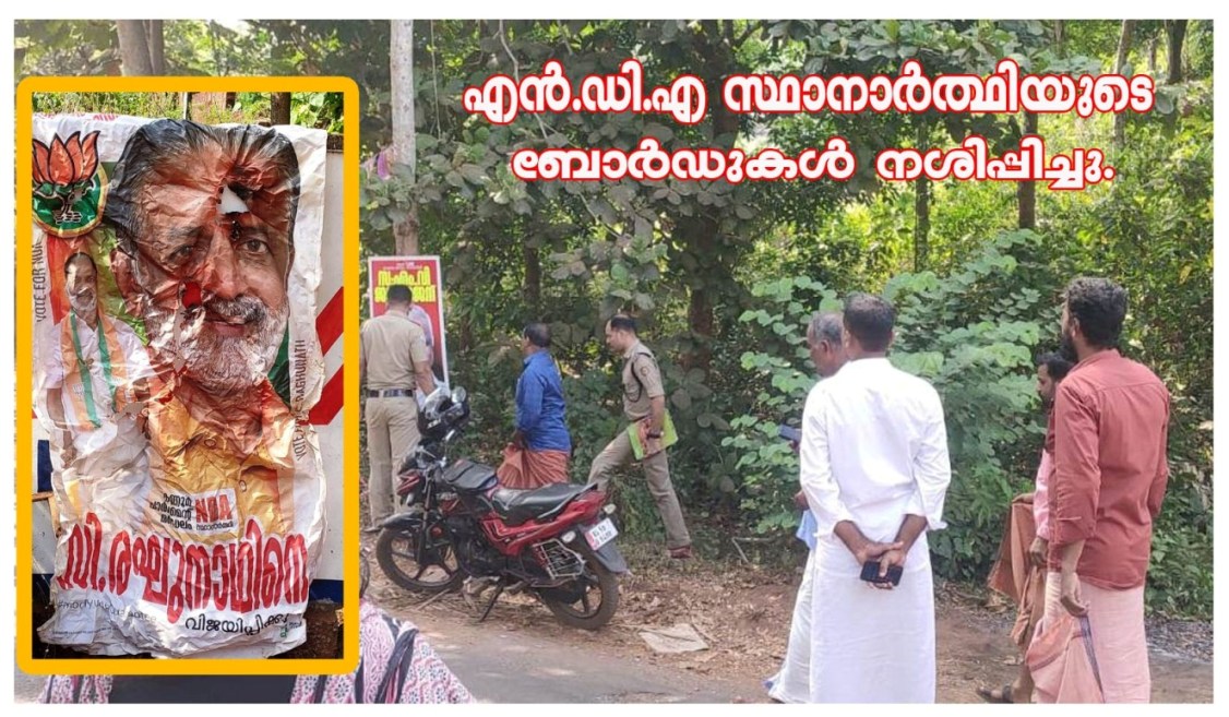 എന് ഡി എ പ്രചരണ ബോര്ഡ് തീവെച്ചു നശിപ്പിച്ചതില് ബി ജെ പി സംസ്ഥാന സമിതി അംഗം
