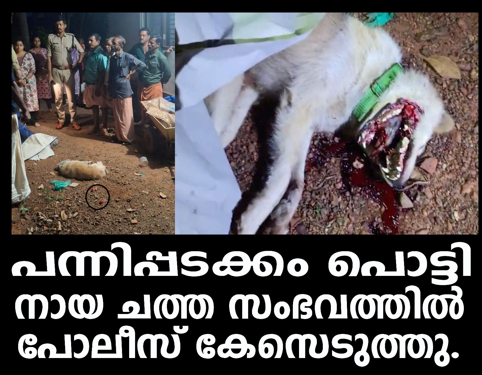 ചത്ത നായയുടെ പോസ്റ്റ്മോര്ട്ടം ഇന്ന് രാവിലെ നടക്കും.