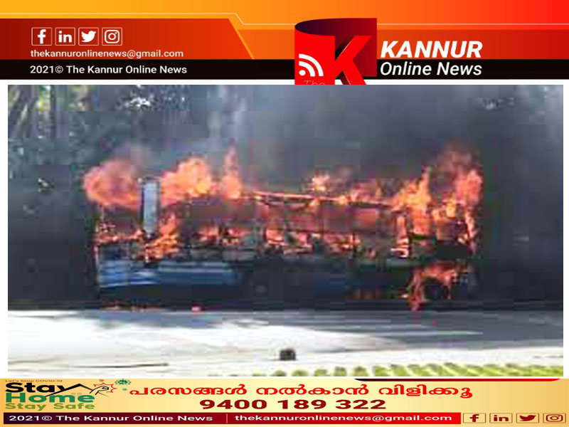 കണ്ണൂര്: സ്വകാര്യ ബസിന് ഓടിക്കൊണ്ടിരിക്കെ തീപിടിച്ചു, ബസ് പൂര്ണമായി കത്തിനശിച്ചു, ആര്ക്കും പരിക്കില്ല.