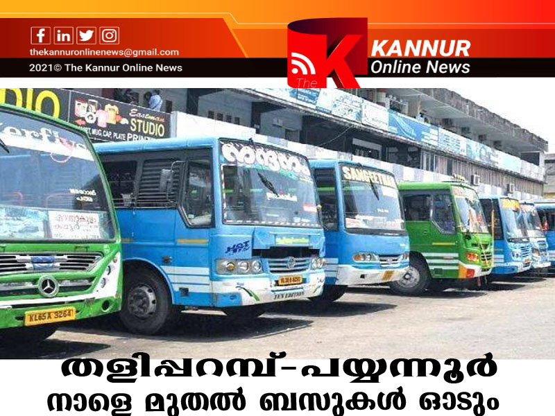 തളിപ്പറമ്പ്: തളിപ്പറമ്പ്-പയ്യന്നൂര്‍ റൂട്ടില്‍ സ്വകാര്യബസ് സര്‍വീസ് നാളെ മുതല്‍ പുനരാരംഭിക്കും.