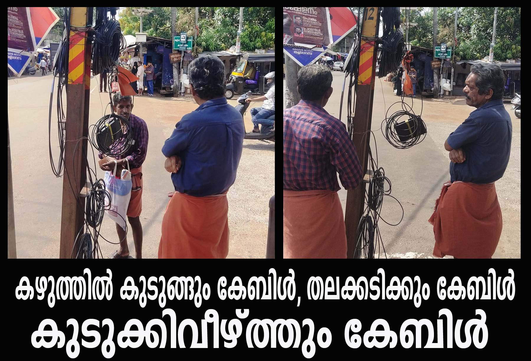 കേബിളുകള് ചുരുട്ടിവെക്കുന്നതിന് പകരം സംവിധാനമൊരുക്കാന് ഒന്നും ചെയ്യാനില്ലേയെന്നാണ് നാട്ടുകാരുടെ ചേദ്യം.