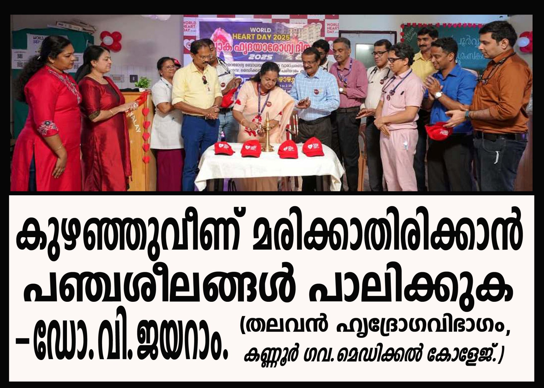 വലിയതോതില്‍ വര്‍ദ്ധിച്ചത് ആശങ്കാജനകമാണെന്നും, ജീവിതത്തില്‍ പഞ്ചശീലങ്ങള്‍ നിഷ്ഠയോടെ പാലിച്ചാല്‍ ഇതിന് പരിഹാരം കാണാന്‍ സാധിക്കുമെന്നും കണ്ണൂര്‍ ഗവ.മെഡിക്കല്‍ കോളേജ് കാര്‍ഡിയോളജി വിഭാഗം തലവനും പ്രമുഖ ഹൃഗ്രോഗ വിദഗ്ദ്ധനുമായ ഡോ.വി.ജയറാം.