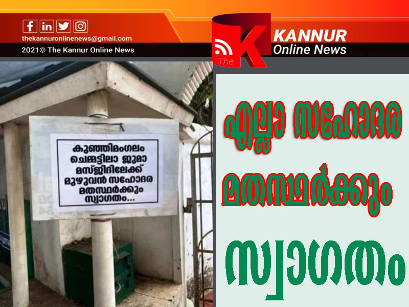 മുഴുവന് സഹോദരമതസ്ഥര്ക്കും സ്വാഗതം–സഹോദരസ്നേഹം ബോര്ഡ് വെച്ച് തെളിയിക്കേണ്ടെന്നും മനസിലുണ്ടെന്നും ജുമാഅത്ത് കമ്മറ്റി.