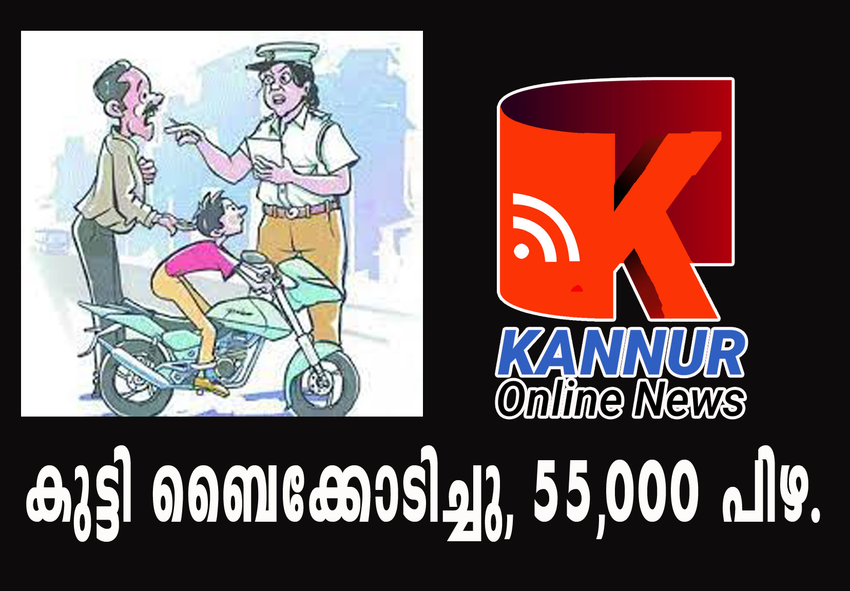 പ്രായപൂര്ത്തിയാകാത്ത വിദ്യാര്ത്ഥി ബൈക്കോടിച്ചു, രക്ഷിതാവിനും ആര്.സി.ഉടമക്കും 55,000 പിഴ.