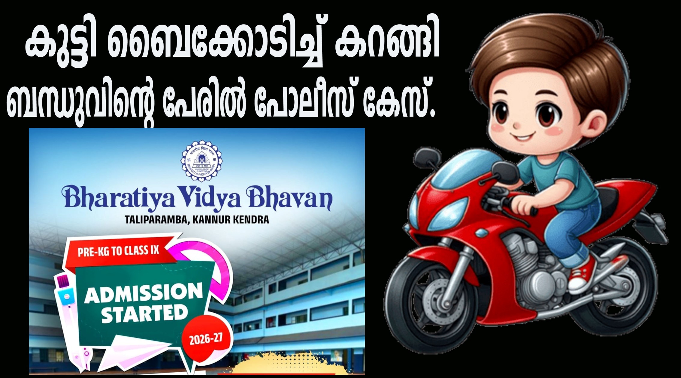 കുട്ടി ബൈക്കോടിച്ച് കറങ്ങി ബന്ധുവിന്റെ പേരില്‍ പോലീസ് കേസ്.