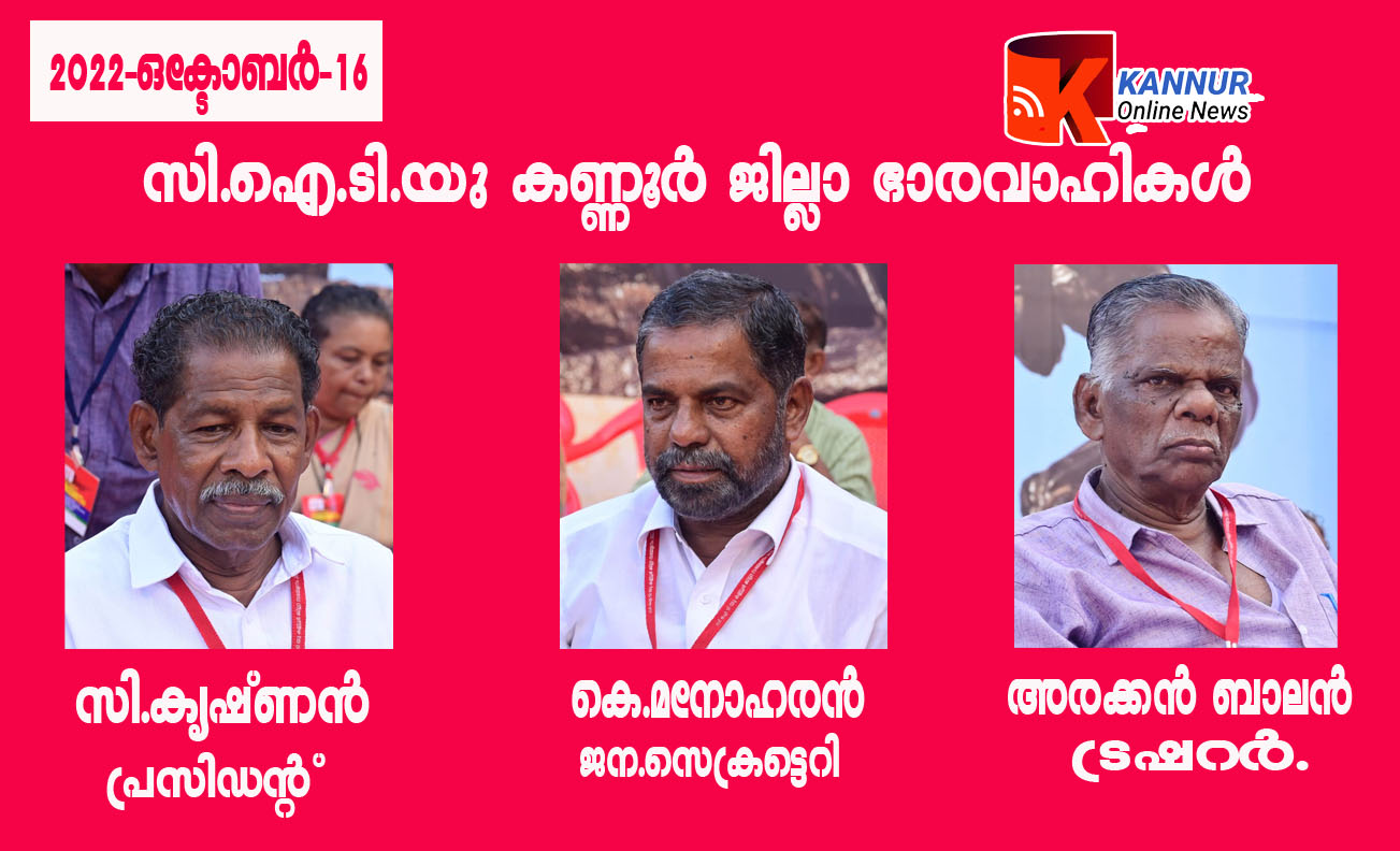 സിഐടിയു ജില്ലാ സമ്മേളനം: സി.കൃഷ്ണന് പ്രസിഡന്റ്, കെ.മനോഹരന് ജന.സെക്രട്ടറി, അരക്കന് ബാലന്-ട്രഷറര്