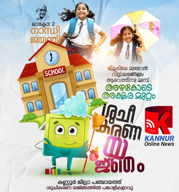 കണ്ണൂര്: സ്കൂള് തുറക്കുന്നതിനു മുന്നോടിയായി ശുചീകരണ യഞ്ജത്തിന് ആഹ്വാനം ചെയ്ത് കണ്ണൂര് ജില്ലാ പഞ്ചായത്ത്.