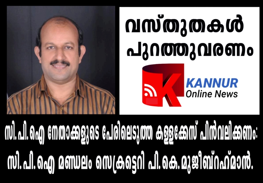 തളിപ്പറമ്പ്: സി.പി.ഐ നേതാക്കള്‍ക്കെതിരെ എടുത്ത കള്ളക്കേസ് പിന്‍വലിക്കണമെന്ന് സി.പി.ഐ തളിപ്പറമ്പ് മണ്ഡലം സെക്രട്ടറി പി.കെ.മുജീബ്‌റഹ്‌മാന്‍ പ്രസ്താവനയില്‍ ആവശ്യപ്പെട്ടു.