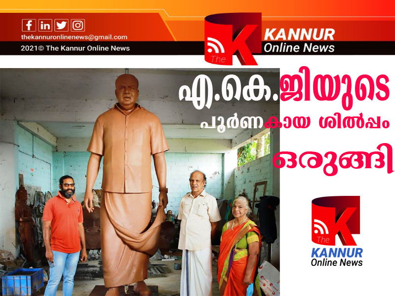 എ.കെ.ജി. യുടെ മകള്‍ ലൈലയും, മരുമകനും മുന്‍ എം.പി.യുമായ പി.കരുണാകരനും മല്ലിയോട്ടുള്ള പണിപ്പുരയില്‍ അവസാന മിനുക്കു പണിയിലെത്തി നില്‍ക്കുന്ന ശില്പം കാണാനെത്തി.