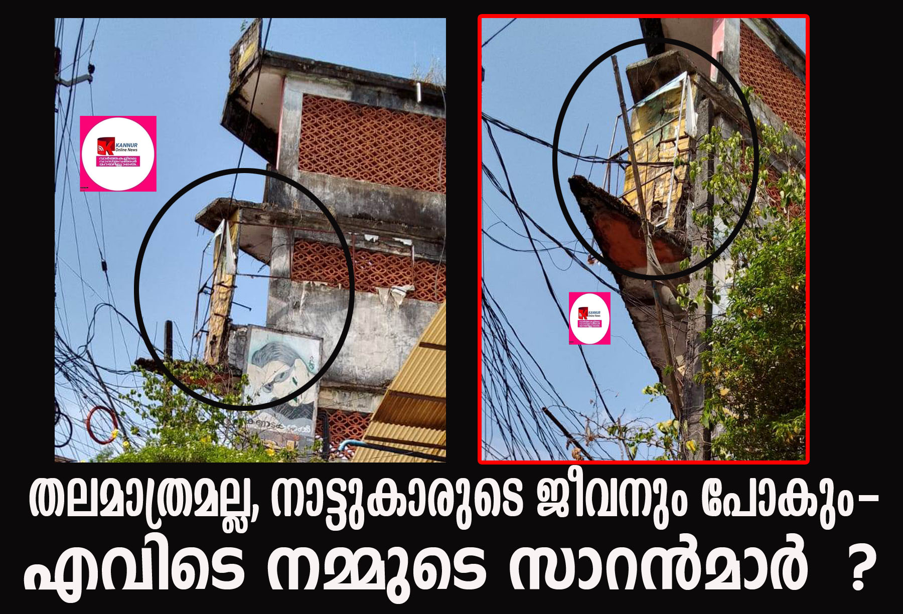 തളിപ്പറമ്പ് കെ.എസ്.ഇ.ബി ഓഫീസിന് സമീപത്തെ മൂന്നുനില അനധികൃത കെട്ടിടത്തെക്കുറിച്ചാണ് പറയുന്നത്.