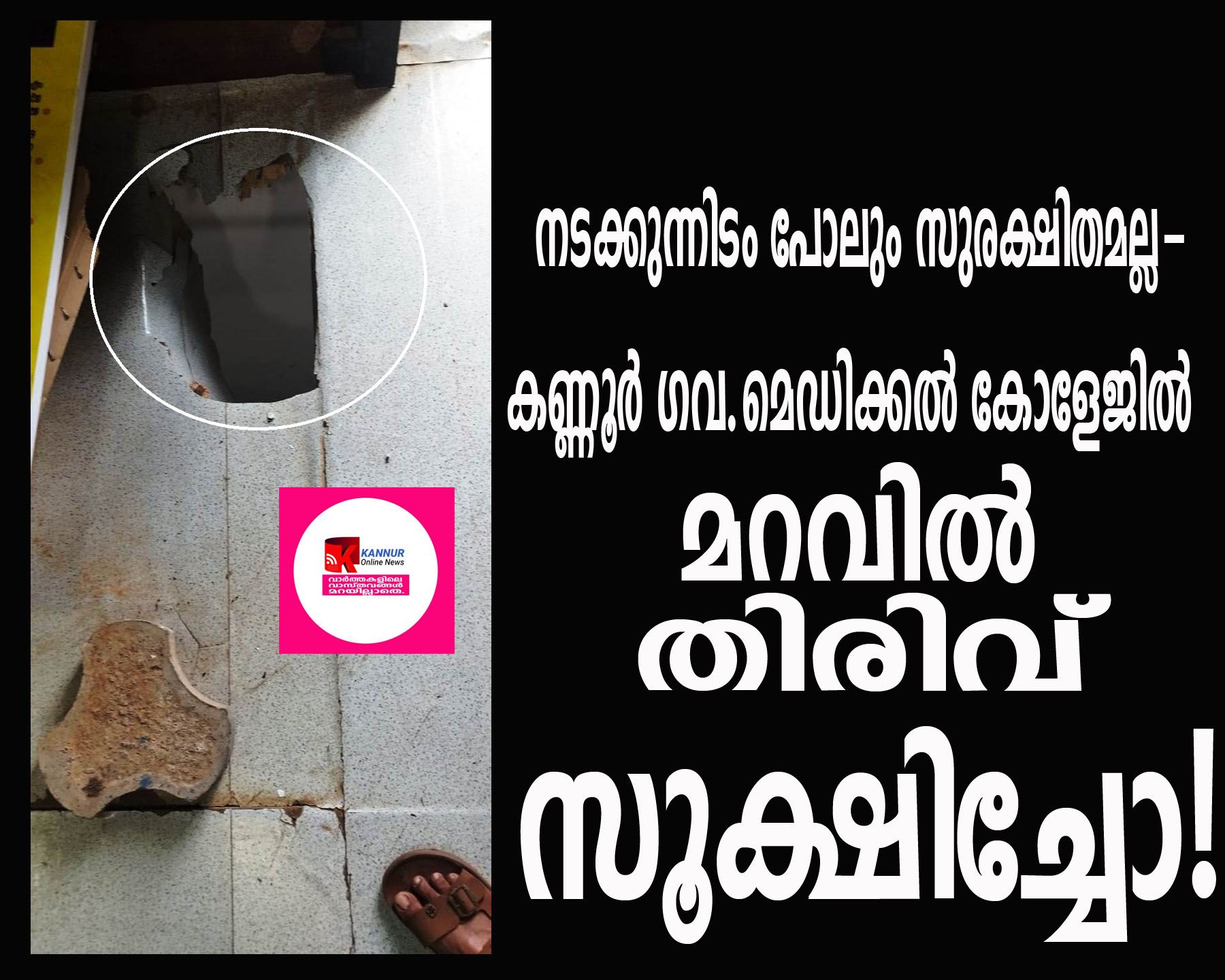 പരിയാരം: കണ്ണൂര്‍ ഗവ.മെഡിക്കല്‍ കോളേജില്‍ മെഡിക്കല്‍ റിക്കാര്‍ഡ് വിഭാഗം ഓഫീസിന്റെ വുഡന്‍ അടിത്തറ തകര്‍ന്നു, ഓഫീസിലെത്തിയ മധ്യവയസ്‌ക്കന്‍ അപകടത്തില്‍ പെടാതെ അല്‍ഭുതകരമായി രക്ഷപ്പെട്ടു.
