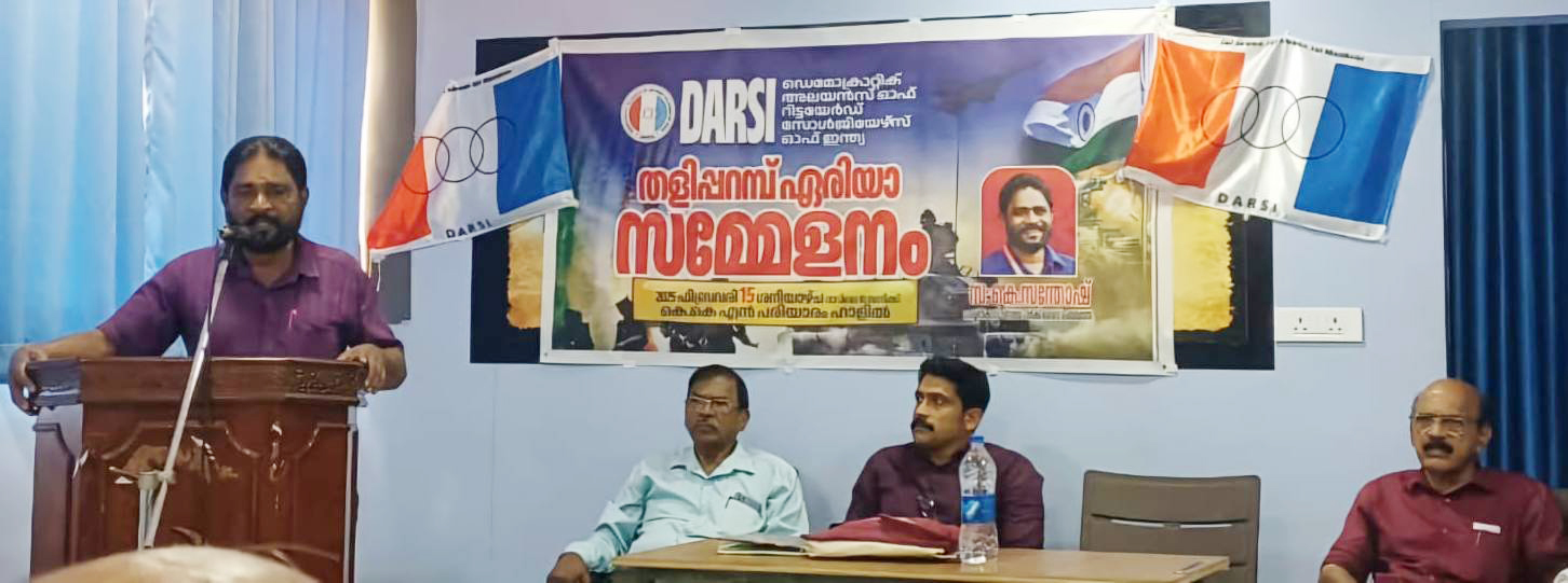 തളിപ്പറമ്പ്: കണ്ണൂര് ജില്ലയിലെ പ്രധാന ആശുപത്രികളെ ഇ.സി.എച്ച്.എസ്. എംപാനല് ചെയ്യണമെന്ന് പുതുതായി രൂപീകൃതമായ വിമുക്തഭട സംഘടന ഡമോക്രാറ്റിക് അലയന്സ് ഓഫ് റിട്ടയേര്ഡ് സോള്ജിയേഴ്സ് ഓഫ് ഇന്ത്യയുടെ(ദര്ശി)ആദ്യ തളിപ്പറമ്പ് ഏരിയാ സമ്മേളനം സമ്മേളനം പ്രമേയത്തിലൂടെ ആവശ്യപ്പെട്ടു.
