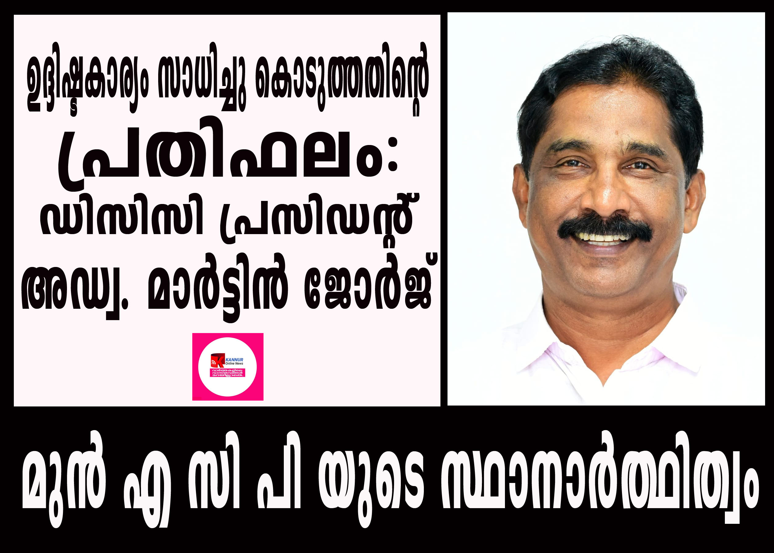 മുന് എ സി പി യുടെ സ്ഥാനാര്ത്ഥിത്വം ഉദ്ദിഷ്ടകാര്യം സാധിച്ചു കൊടുത്തതിന്റെ പ്രതിഫലം: അഡ്വ. മാര്ട്ടിന് ജോര്ജ്