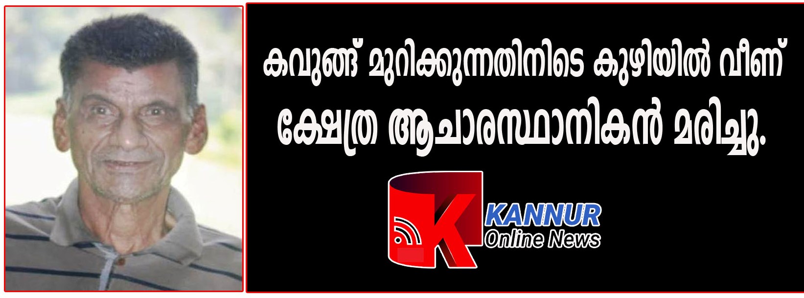 കവുങ്ങ് മുറിക്കുന്നതിനിടെ കുഴിയില് വീണ് ക്ഷേത്ര ആചാരസ്ഥാനികന് മരിച്ചു.