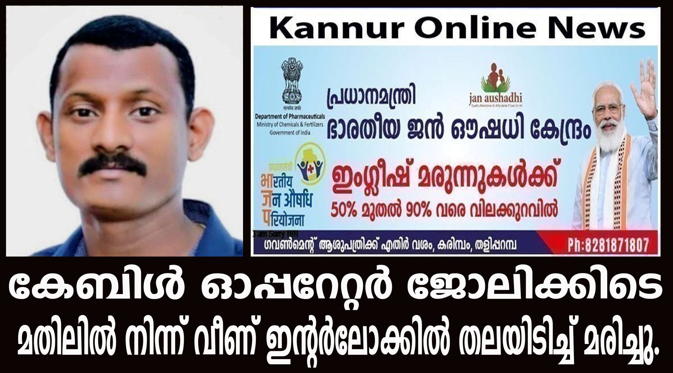 കേബിള്‍ ഓപ്പറേറ്റര്‍ ജോലിക്കിടെ മതിലില്‍ നിന്ന് വീണ് ഇന്റര്‍ലോക്കില്‍ തലയിടിച്ച് മരിച്ചു.