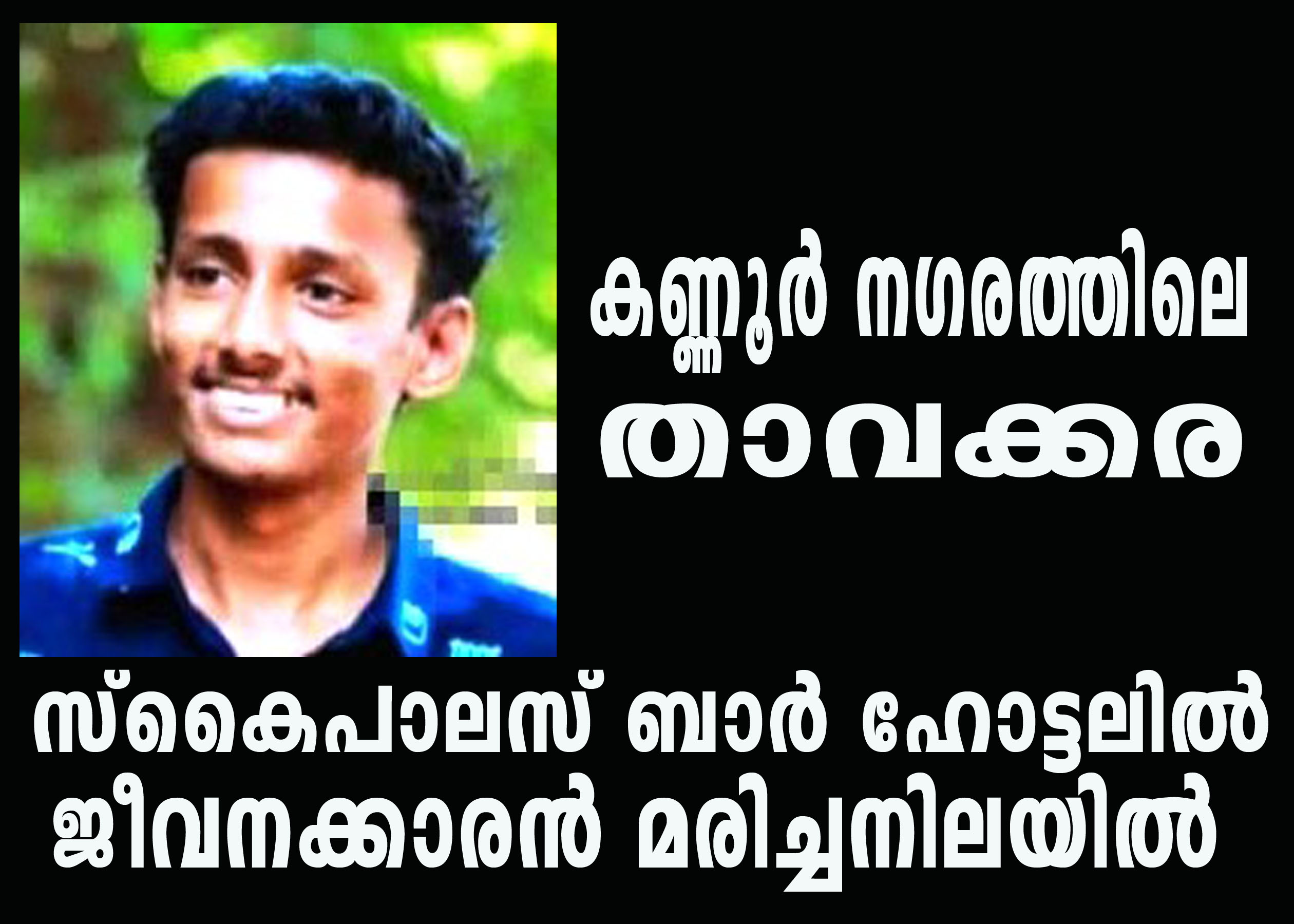 കണ്ണൂര്‍: കണ്ണൂര്‍ നഗരത്തിലെ താവക്കര റോഡരികിലെ സ്‌കൈപാലസ് ബാര്‍ ഹോട്ടലില്‍ ജീവനക്കാരനെ മരിച്ചനിലയില്‍ കണ്ടെത്തിയ സംഭവത്തില്‍ കണ്ണൂര്‍ ടൗണ്‍ പോലിസ് കേസെടുത്ത് അന്വേഷണമാരംഭിച്ചു.