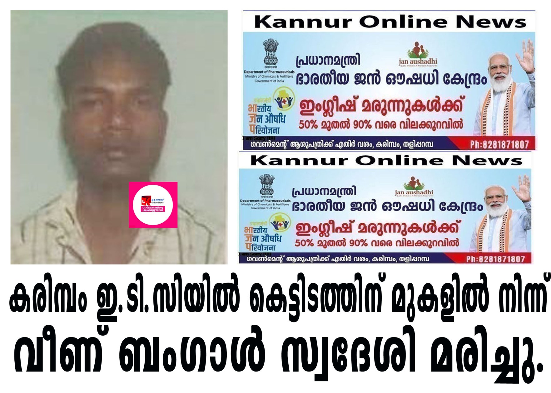 കരിമ്പം ഇ.ടി.സിയില് കെട്ടിടത്തിന് മുകളില് നിന്ന് വീണ് ബംഗാള് സ്വദേശി മരിച്ചു.