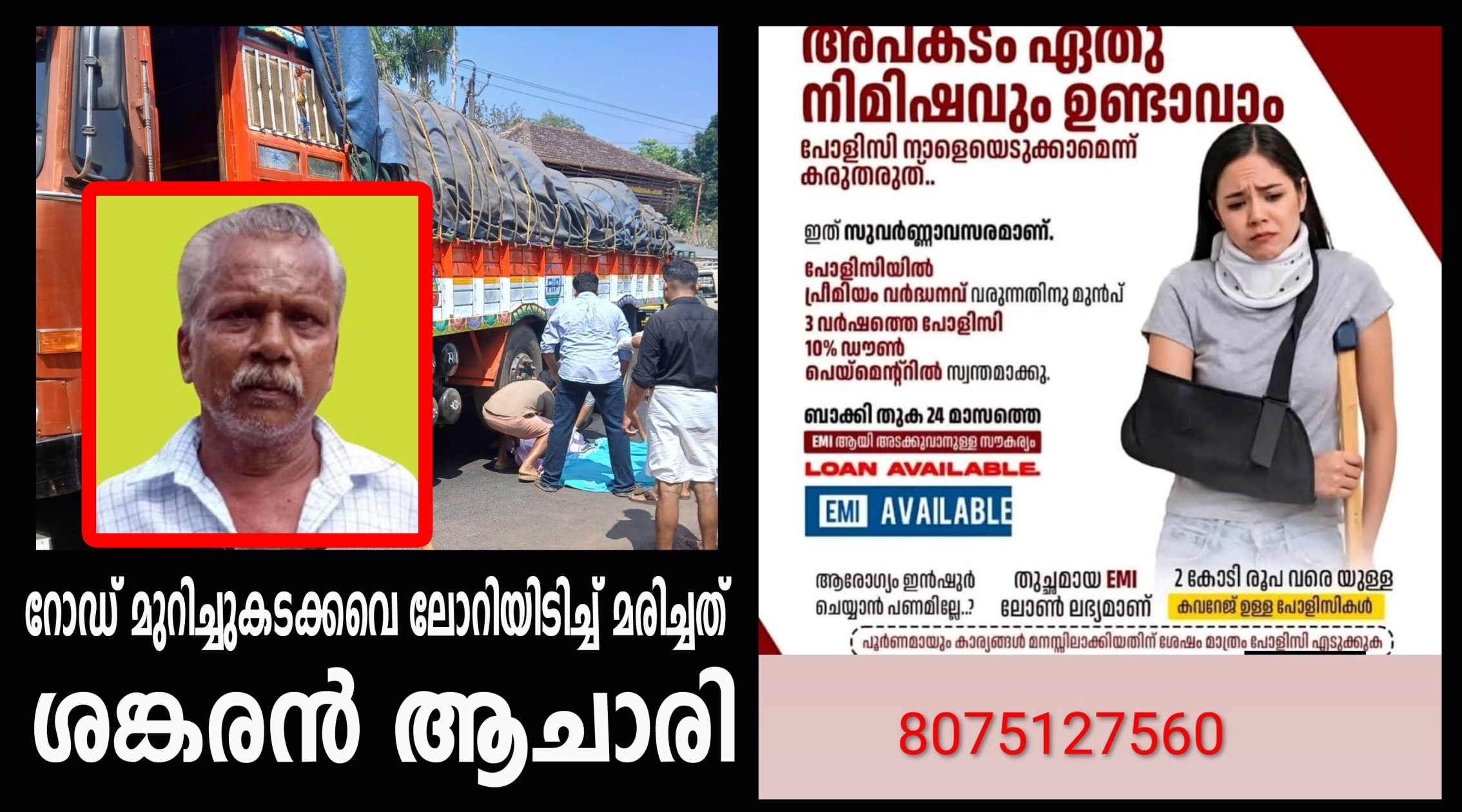 റോഡ് മുറിച്ചുകടക്കവെ ശങ്കരന് ആചാരിയെ എം.എച്ച്.09-സി.കെ.-9954 ലോറി ഇടിച്ചുതെറിപ്പിക്കുകയായിരുന്നു.