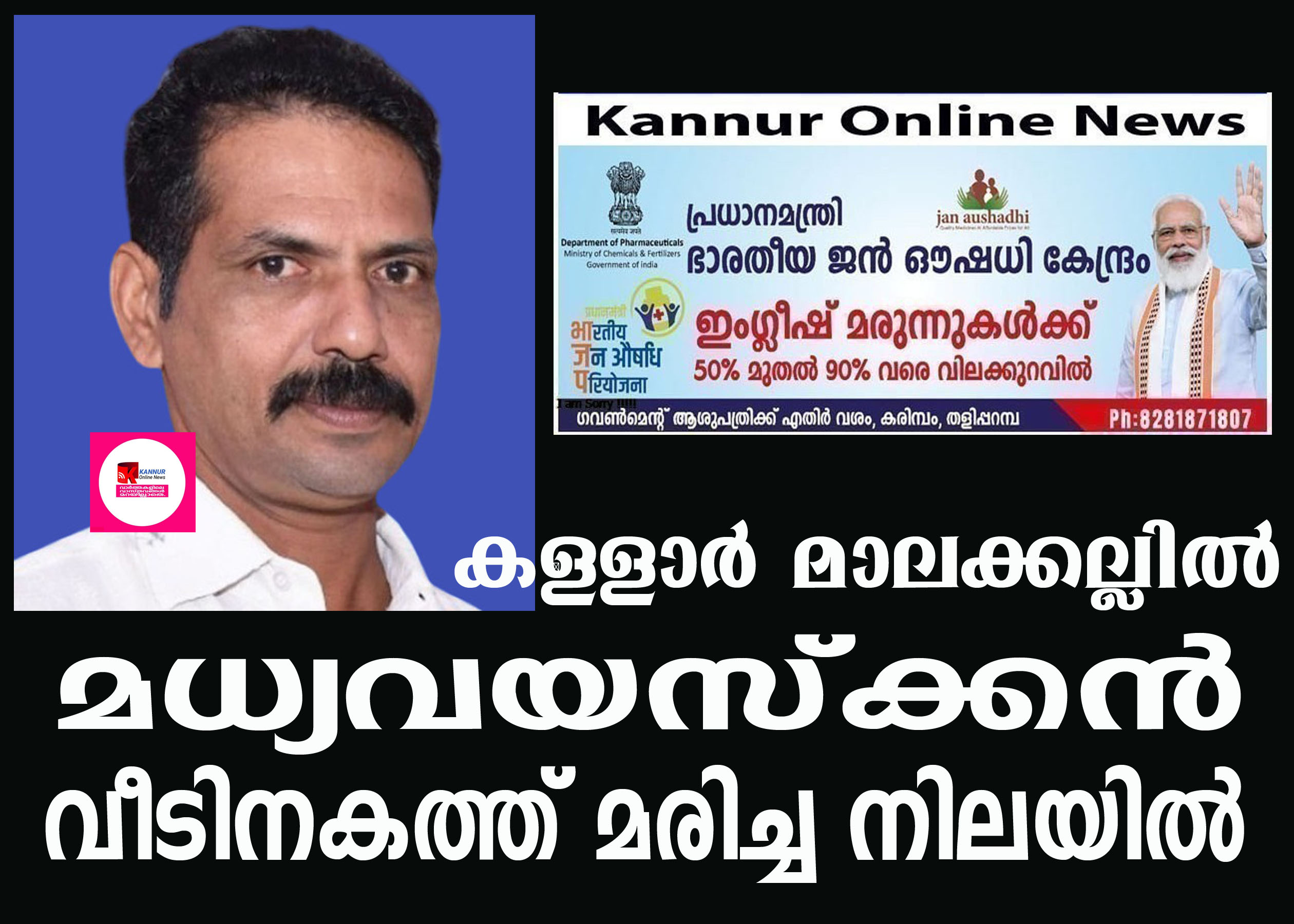 കള്ളാര്: മധ്യവയസ്ക്കന് വീടിനകത്ത് മരിച്ച നിലയില് കണ്ടെത്തി.