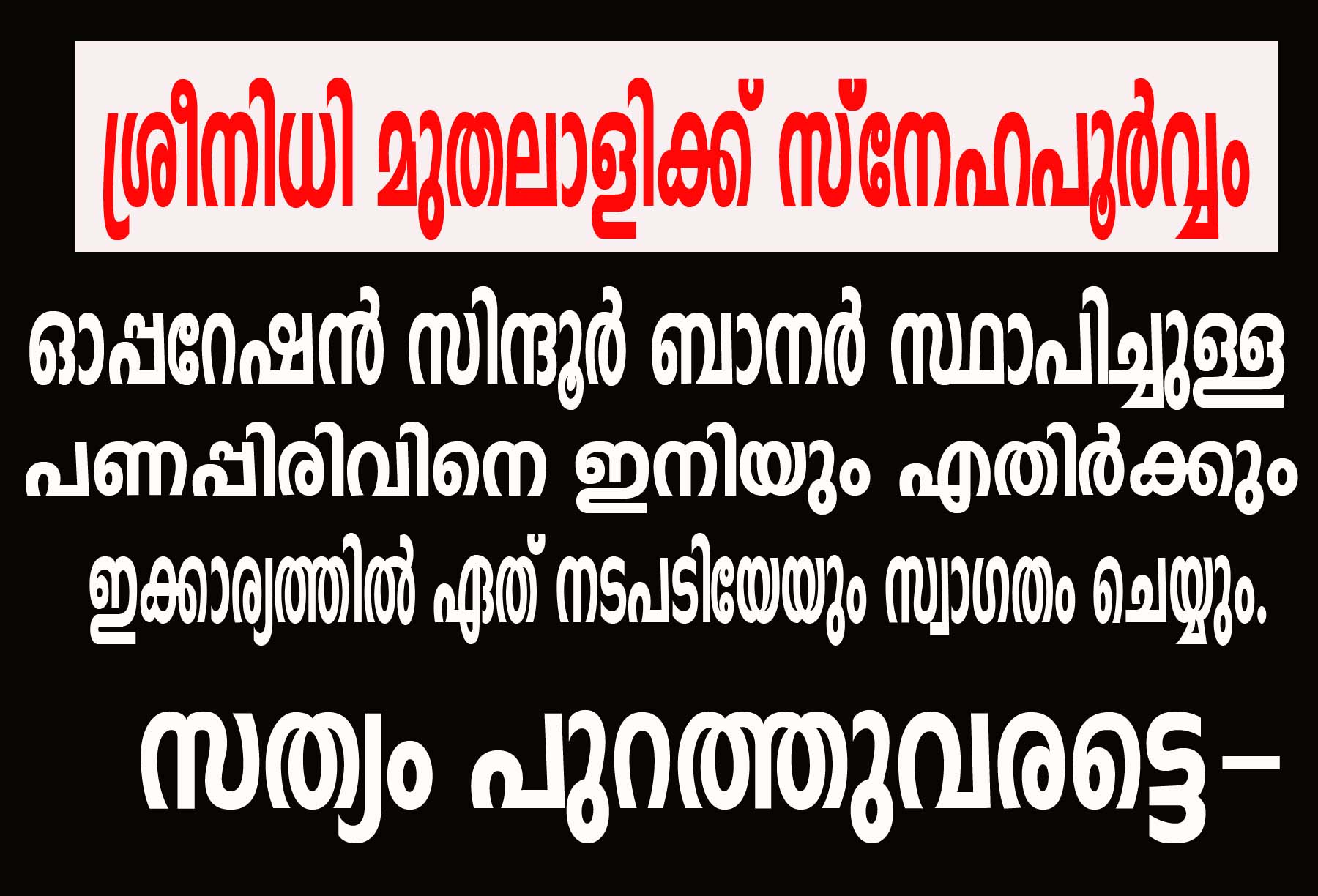 ഓപ്പറേഷന്‍ സിന്ദൂര്‍ ബാനര്‍ സ്ഥാപിച്ചുള്ള പണപ്പിരിവിനെ ഇനിയും എതിര്‍ക്കും