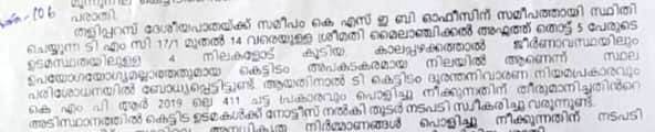 ടി.എം.സി 17/1 മുതല് 14 വരെയുള്ള മൈലാഞ്ചിക്കല് അഫ്സത്ത് തുടങ്ങി 5 പേരുടെ ഉടമസ്ഥതയിലുള്ള കെട്ടിടം ജീര്ണാവസ്ഥയിലും ഉപയോഗയോഗ്യമല്ലാത്തതുമാണെന്നും അപകടാവസ്ഥയിലാണെന്നും പരിശോധനയില് ബോധ്യമായതായി സെക്രട്ടെറി പറഞ്ഞു. കെട്ടിടം ദുരന്ത നിവാരണ നിയമപ്രകാരവും കെ.എം.പി.ആര്-2019 ലെ 411 ചട്ടപ്രകാരവും പൊളിച്ചുനീക്കാന് തീരുമാനിച്ചതിന്റെ അടിസ്ഥാനത്തില് നടപടികള് സ്വീകരിച്ചുവരുന്നതായും സെക്രട്ടെറി നല്കിയ കത്തില് പറയുന്നു.
