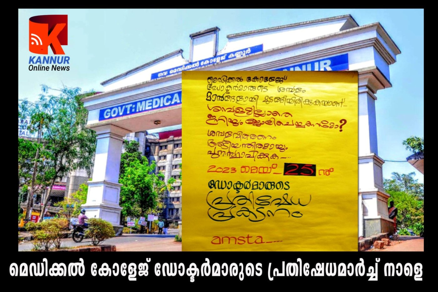 നാളെ രാവിലെ ഒന്പതിന് കണ്ണൂര് ഗവ മെഡിക്കല് കോളേജിലെ ഡോക്ടര്മാര് കോളേജ് ഓഫീസിലേക്ക് മാര്ച്ച് നടത്തും.