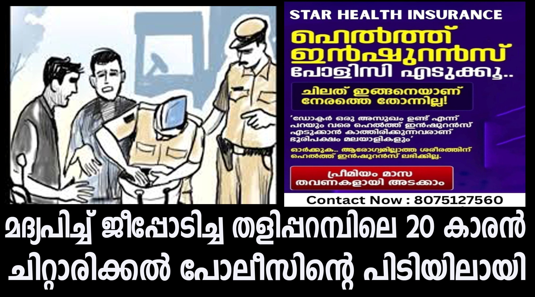 ചിറ്റാരിക്കല്: മദ്യപിച്ച് ജീപ്പോടിച്ച തളിപ്പറമ്പ് സ്വദേശിയായ 20 കാരന്റെ പേരില് പോലീസ് കേസെടുത്തു.