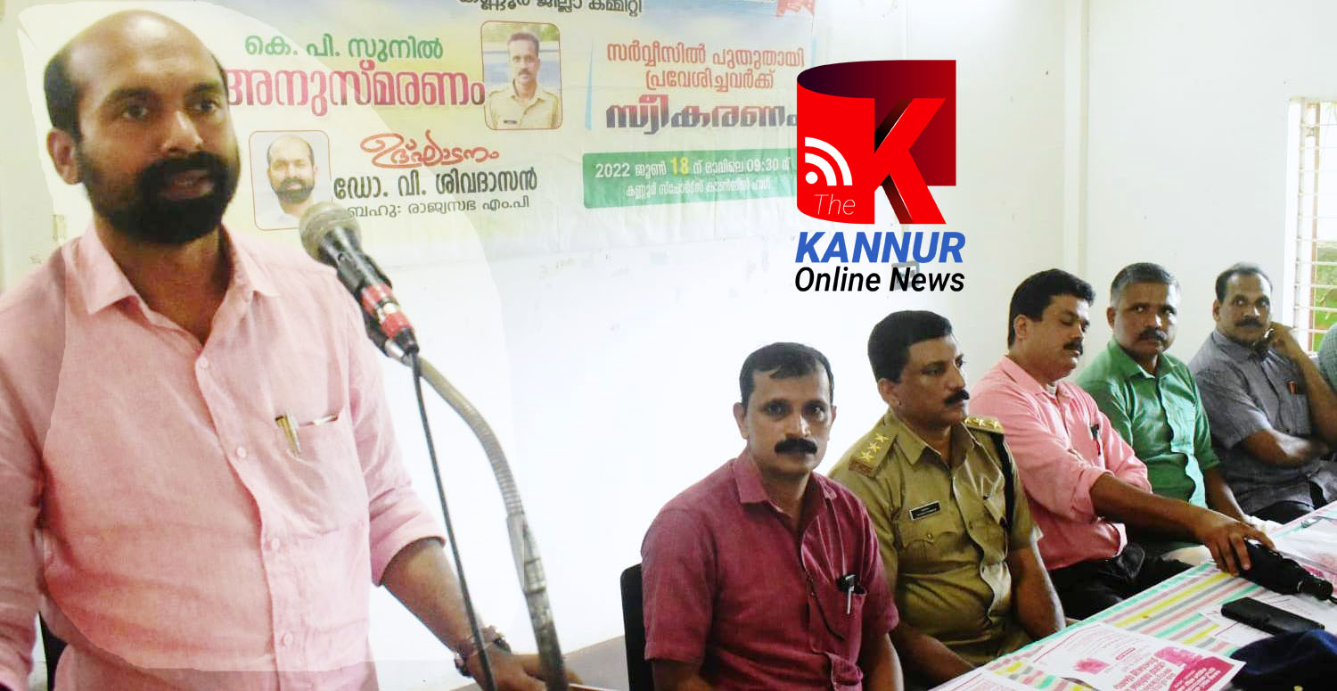 എക്‌സൈസ് ഡ്രൈവര്‍ കെ പി സുനില്‍ അനുസ്മരണവും പുതുതായി കണ്ണൂര്‍ ജില്ലയിലേക്ക് സര്‍വീസില്‍ പ്രവേശിച്ച ജീവനക്കാര്‍ക്കുള്ള സ്വീകരണവും കണ്ണൂര്‍ സ്‌പോര്‍ട്‌സ് കൗണ്‍സില്‍ ഹാളില്‍ നടന്നു.